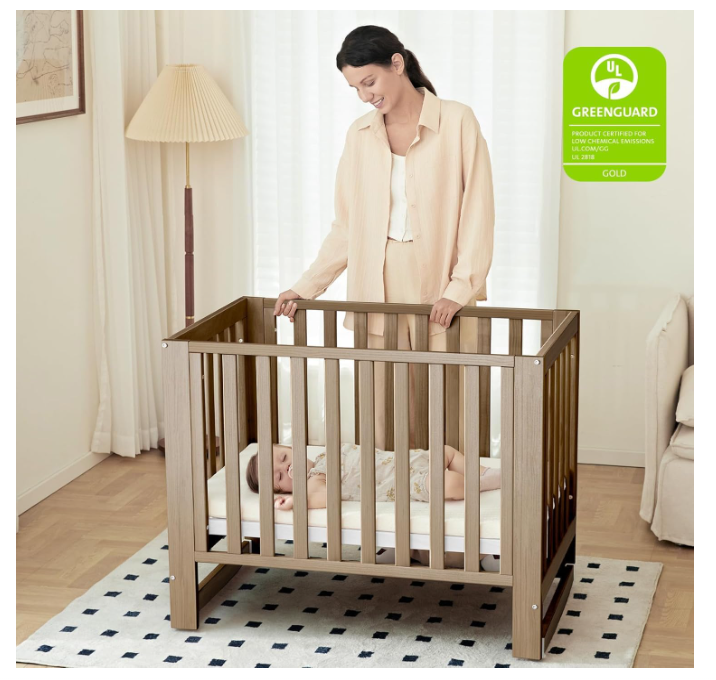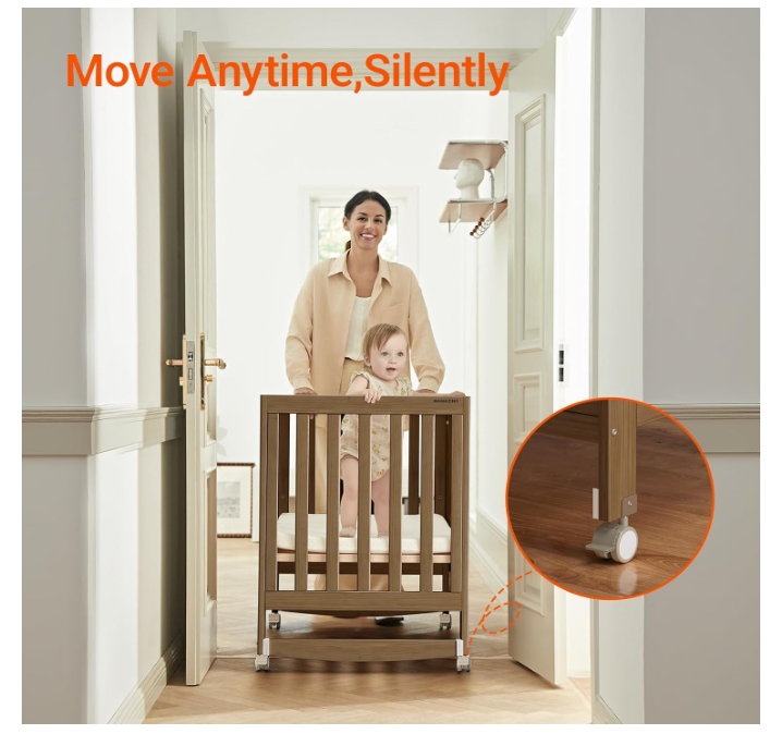 MAMAZING EvoNest – 6-in-1 Convertible Baby Crib with Wheels, New Zealand Pine Wood, Adjustable Height, GREENGUARD Gold Certified, Brown