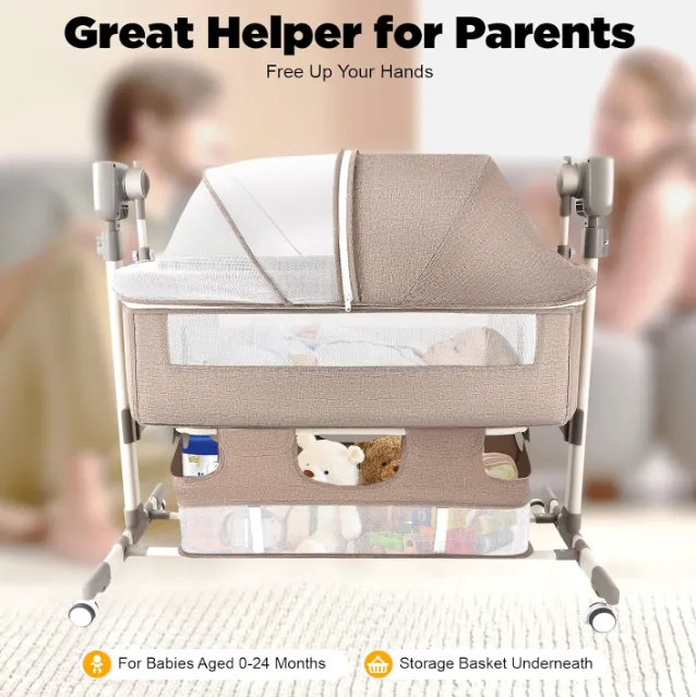 • Smart 2-in-1 Bassinet: Functions as both a crib and a bassinet, ideal for placing next to your bed for more peaceful nights with your baby.