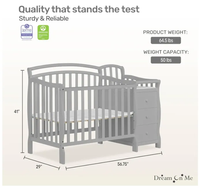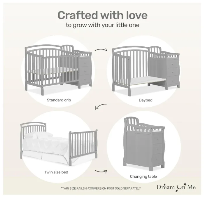 The Dream On Me Casco 3 in 1 - transforms into a mini day bed and later into a twin-size bed, extending its use.