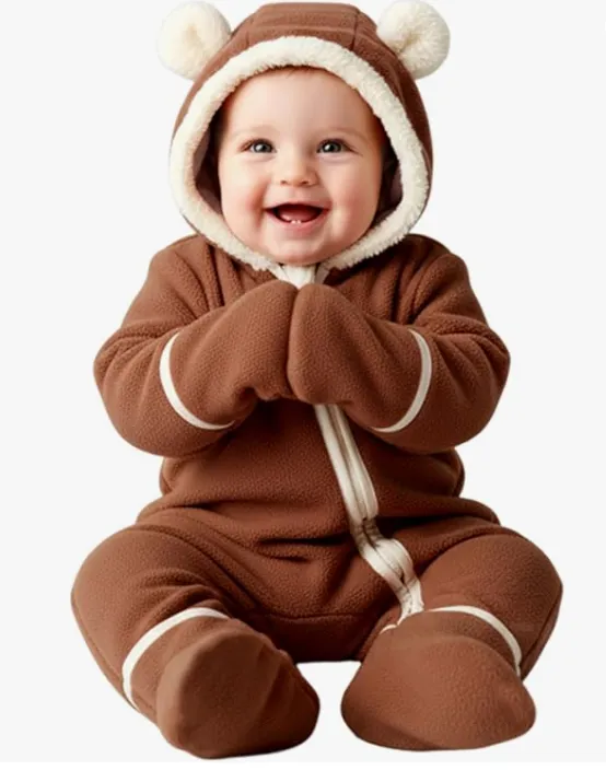 PATPAT Newborn Fleece Hooded Romper – Soft, Warm, Car Seat Friendly, Easy Snap & Adorable Design