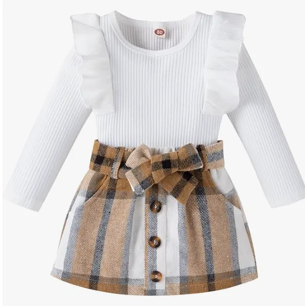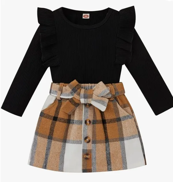 - Stylish and charming: Two-piece set with a skirt and romper, perfect for fall, winter, and spring.
