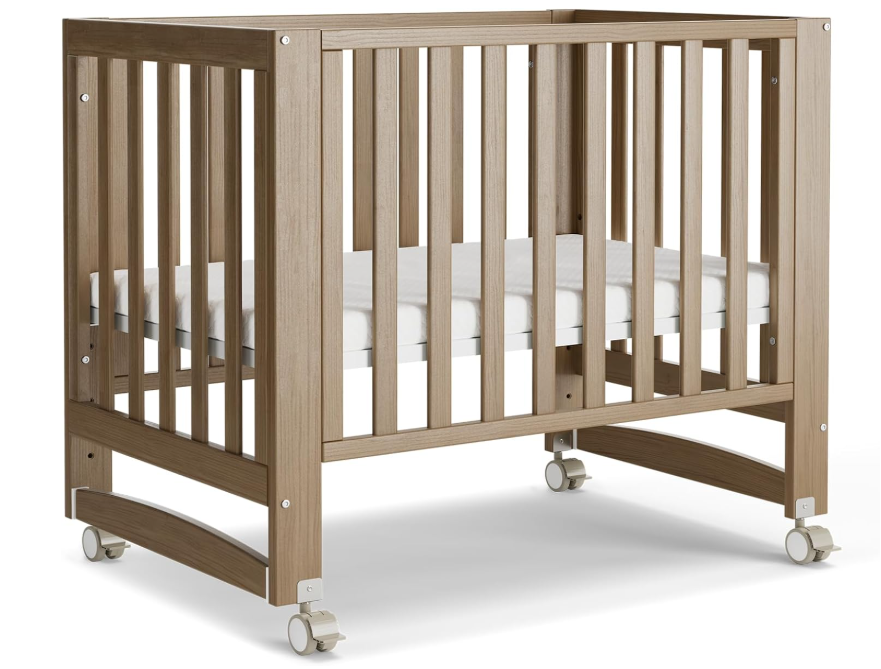 MAMAZING EvoNest – 6-in-1 Convertible Baby Crib with Wheels, New Zealand Pine Wood, Adjustable Height, GREENGUARD Gold Certified, Brown