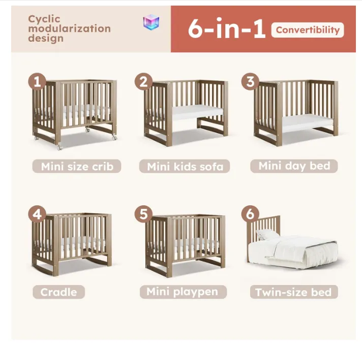 - 6-in-1 convertible design: evolves with your baby, transforming from a crib to a playpen, mini sofa, daybed, and even a twin bed. Includes easy instructions for quick and hassle-free assembly.