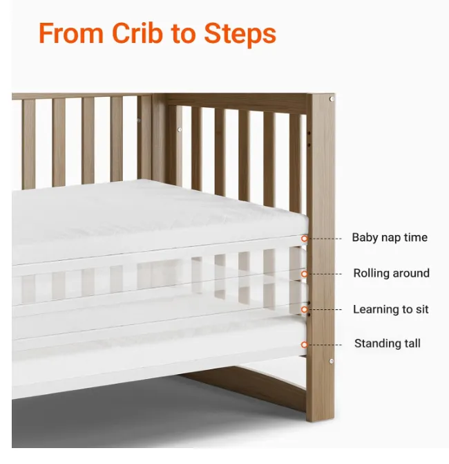 - Adjustable mattress height: four positions to adapt to your growing baby, offering comfort and convenience at every stage.