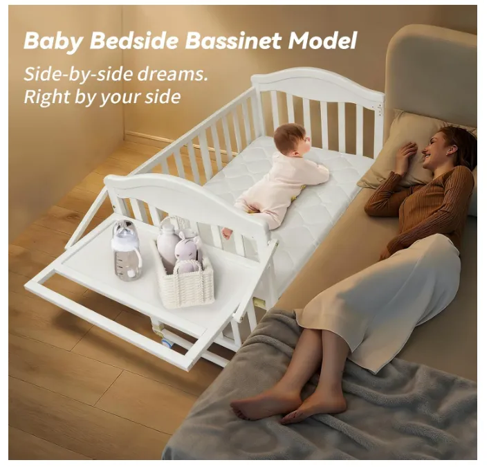 • Nighttime bassinet for small rooms: Places next to the bed to keep an eye on your baby and facilitate nighttime feedings.