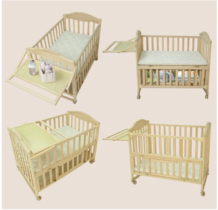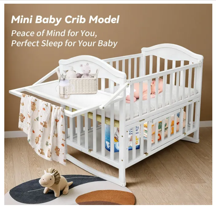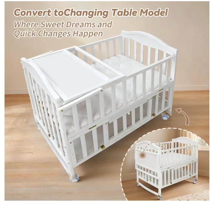 Portable wooden baby crib with wheels, changing table and mattress included – ideal 2026
